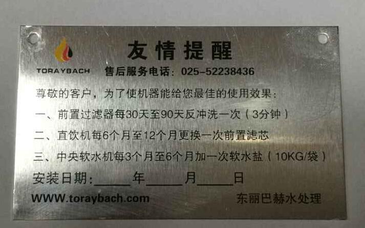 安装服务流程及标准 流程: (1)接到订单,第一时间打电话联系客户,安排时间安装 (2)约定的时间内上门安装 (3)安装完成后五分钟内发信息反馈给经销商 安装标准 ◆着东丽巴赫工作服,干净整洁 ◆自备地毯,安装时将地毯铺开,把安装工具都放在毯子上,以免刮花客户地板或地砖 ◆调试机器,检测出水是否正常,有无渗漏情况 ◆安装完成后擦拭机器(自备抹布),在显眼处挂好售后提示标牌,打扫现场(如刚进客户家时整洁) ◆现场拍照存档 ◆给客户讲解使用注意事项 ◆请客户在安装服务三联单上签字确认,单子带回公司存档 ![]()