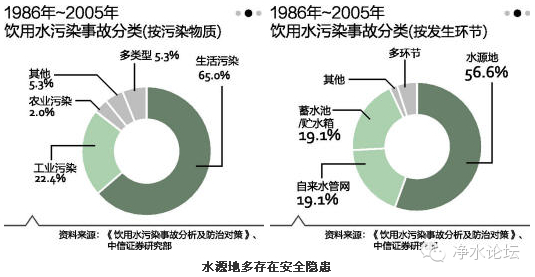曾在全国多处水源地作过调研的第十一届全国人大环境资源保护委员会副主任张文台介绍,除了近3亿农村人口喝不上安全饮用水外,在城市中生活的约5000万人的饮用水也不不达标,“从源头到水厂再到水龙头的各个环节均有可能存在污染”。