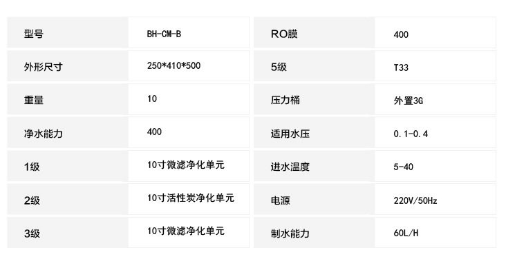 型号:BH-CM-B 产品优势:五级物理净化,反渗透净化技术,去除水中有害物质,保证用水安全健康。
