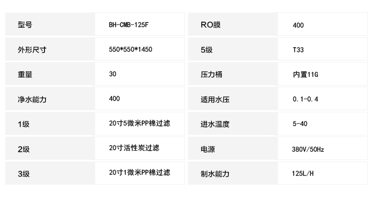 型号:BH-CMB-125F 产品优势:五级物理净化,反渗透净化技术,去除水中有害物质,保证用水安全健康。
