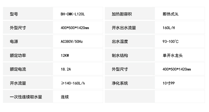 型号:BH-CMK-L120L 产品优势:采用步进给水,逐层加热先进技术,真正冷热水分离又保证一次沸腾