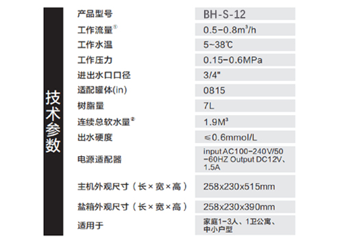 型号:BH-S-12 滤料:KDF高科技滤料,有效去除余氯及铁、猛等重金属产品优势: 独有的抗菌桶设计,防止藻类产生,采用食品级树脂,高效去除水中钙镁离子,使水质柔润