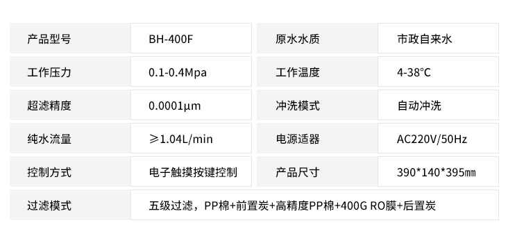 ■ PP棉滤芯:过滤水中杂质,如铁屑、淤泥、毛发、沙石 ■ 炭熔滤芯:高性能吸收性,吸附面积大,吸附异色、异味、余氯和小分子有机物 ■ PP棉滤芯:再次精密过滤水中大于1微米的细微杂质,保护RO膜 ■ 进口陶氏RO膜:去水垢,降铅含量,0.0001微米精细过滤,截留水中的杂质、细菌、病菌、重金属离子等 ■ 碳棒滤芯:增强水的活性,改善口感,增加矿物质